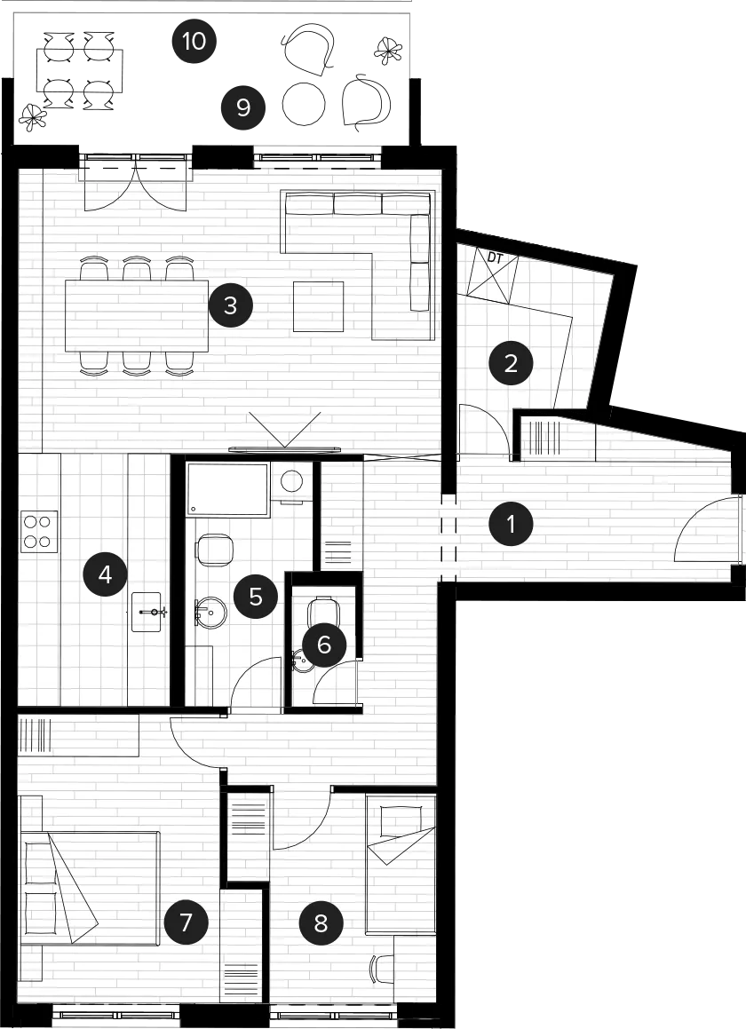 | 10 | Natkriveni balkon | 4.98 m² | 0.5 | 2.49 m² |