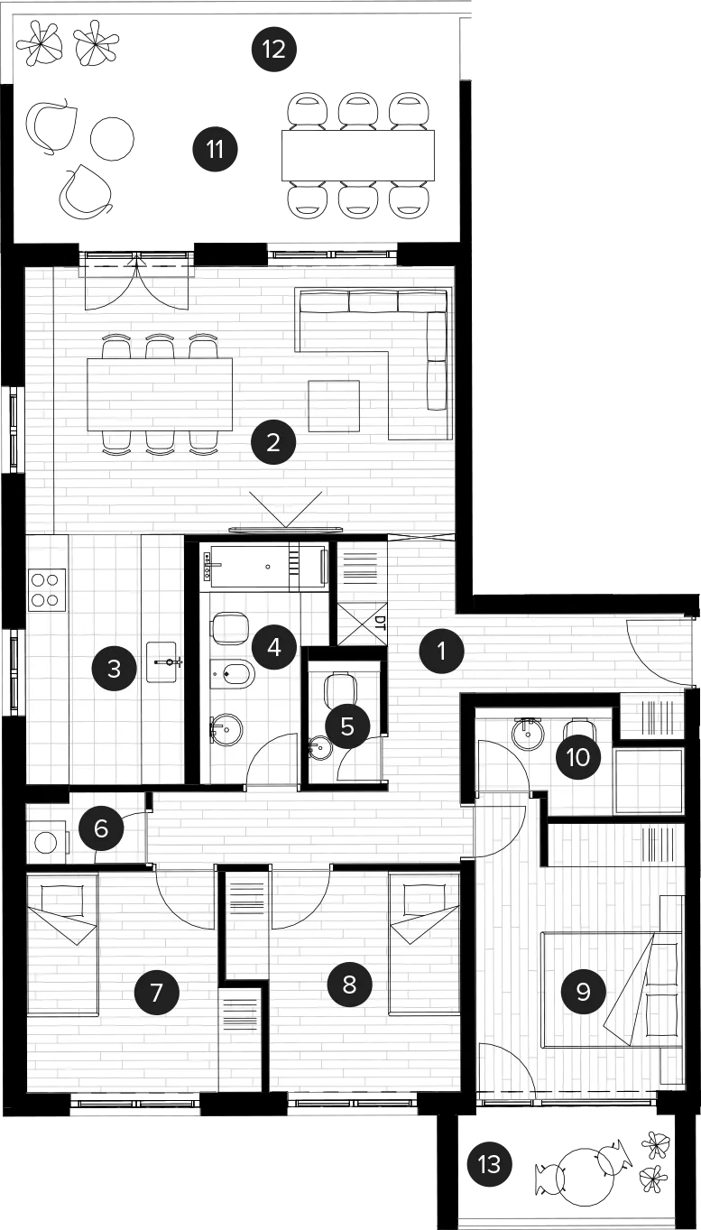 | 11 | Loggia | 13.56 m² | 0.75 | 10.17 m² |