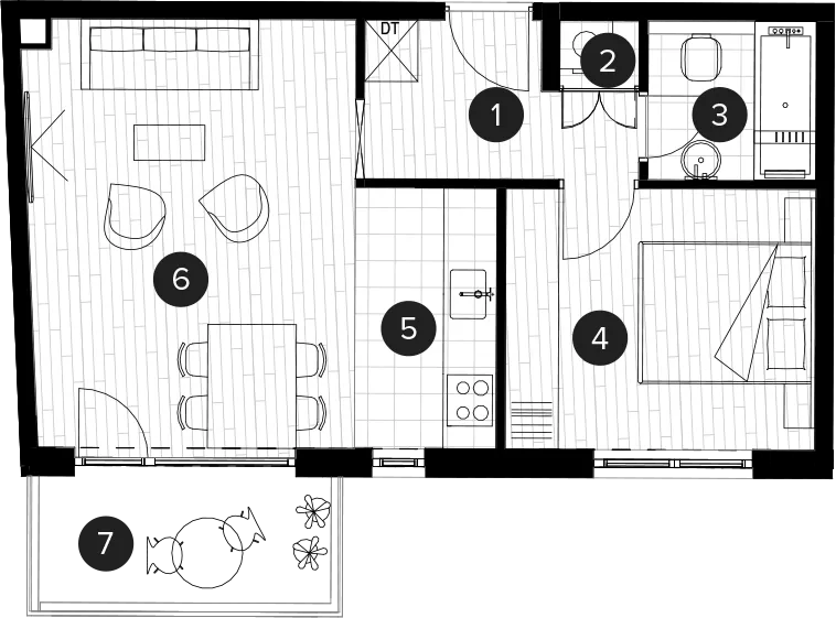 Neto površina zatvorenog dijela stana 41,42 m²