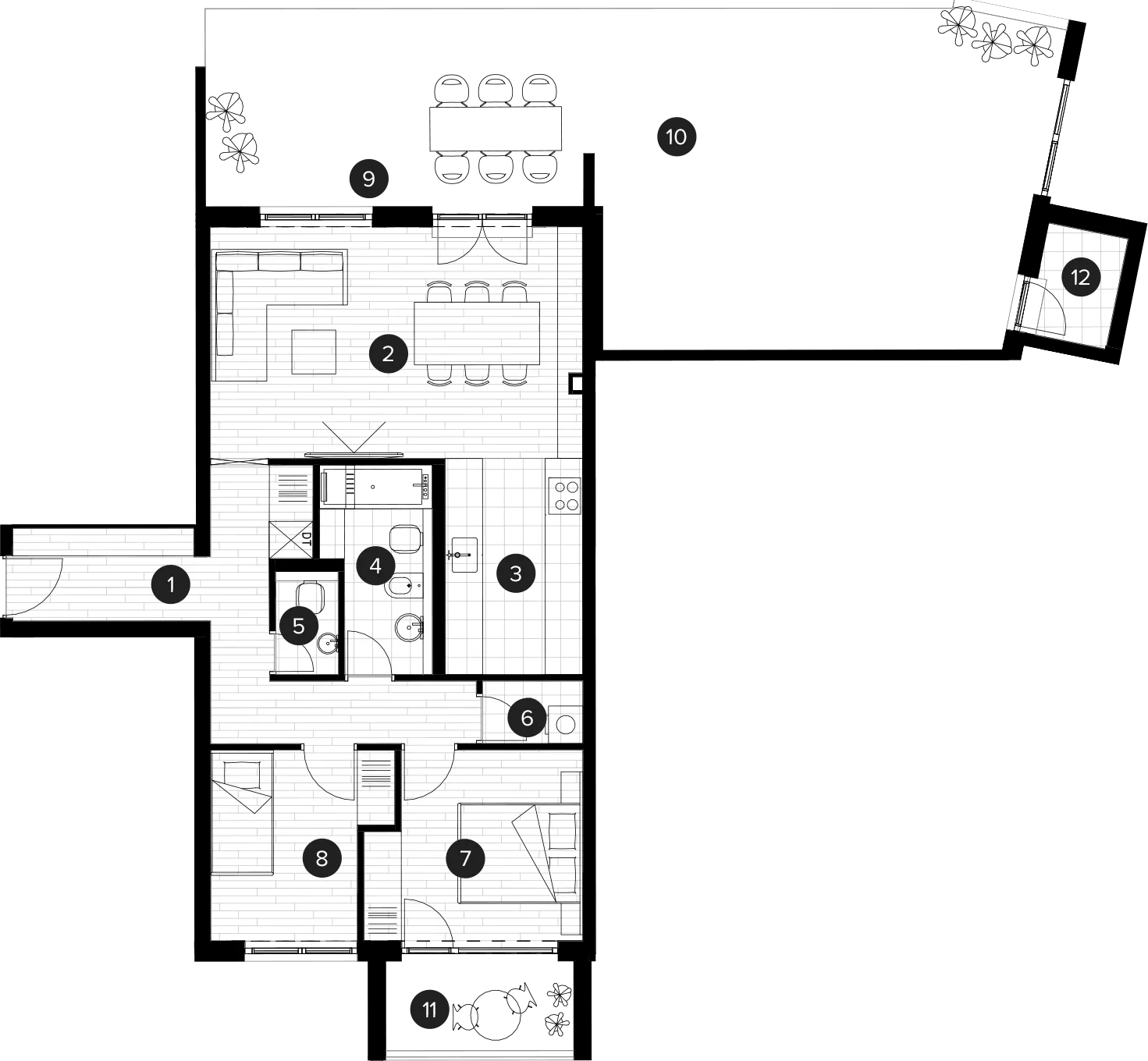 | 10 | Loggia | 5.06 m² | 0.75 | 3.8 m² |
