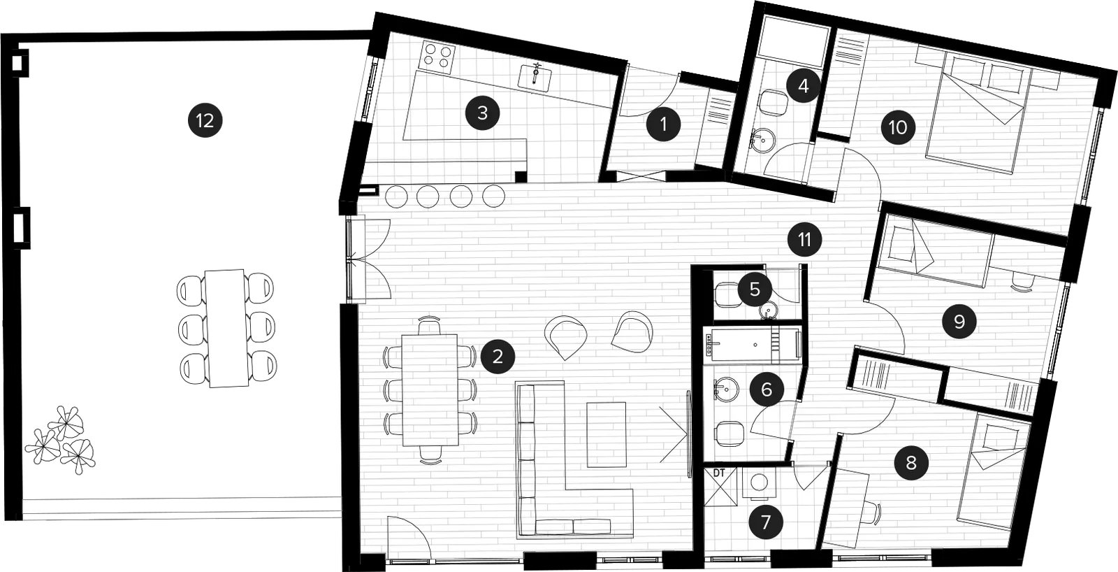 | 12 | Nenatkrivena terasa | 47.99 m² | 0.25 | 12 m² |