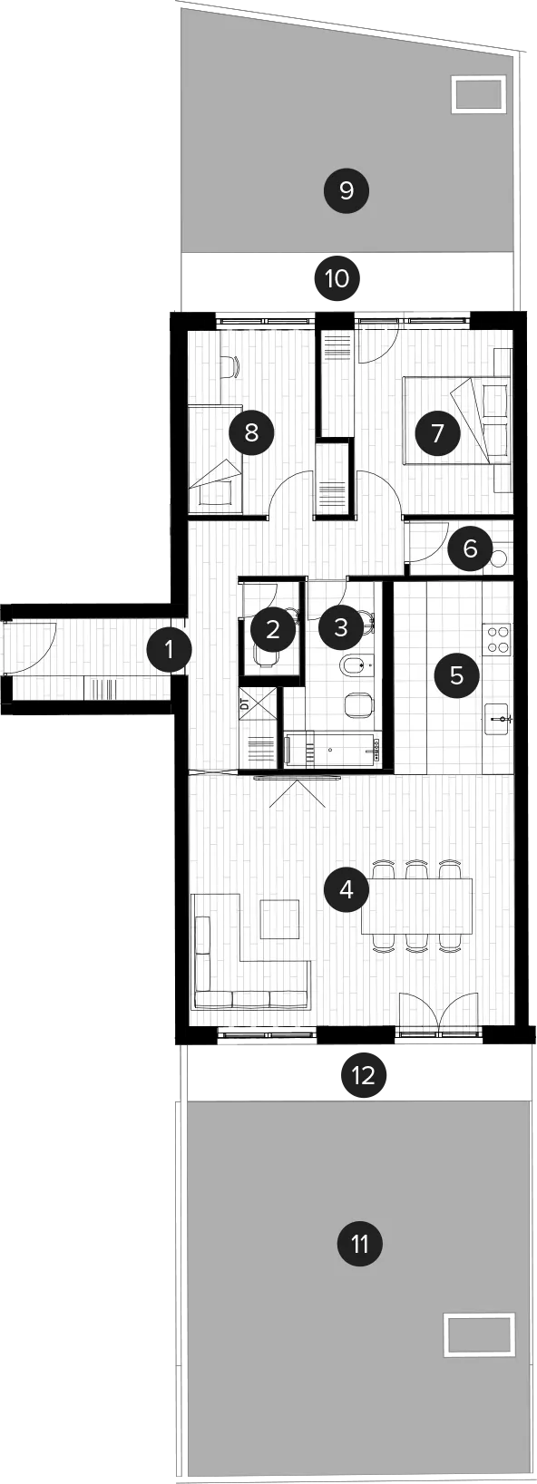 | 12 | Natkrivena terasa | 6.04 m² | 0.5 | 3.02 m² |