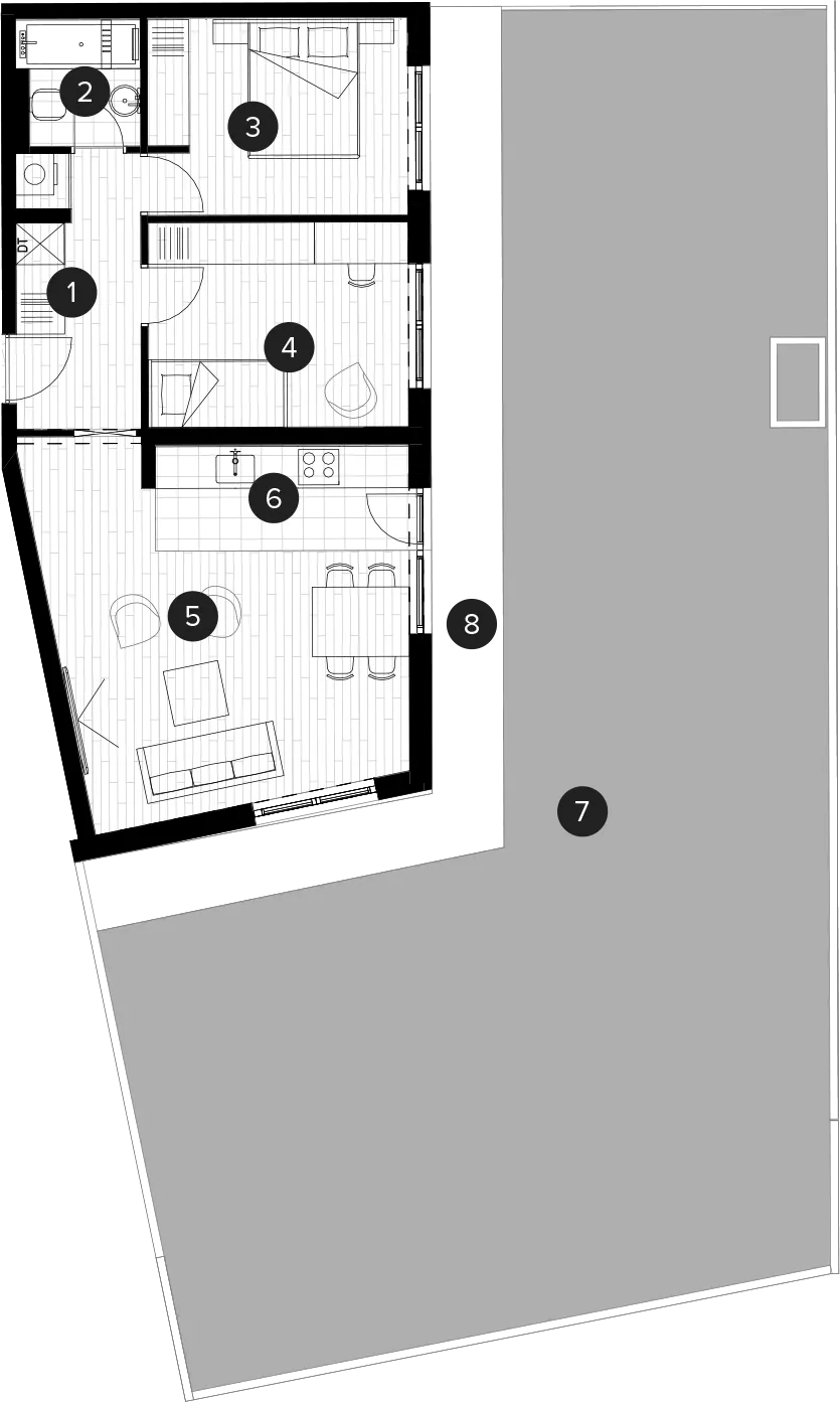 | 8 | Natkrivena terasa | 16.59 m² | 0.5 | 8.3 m² |