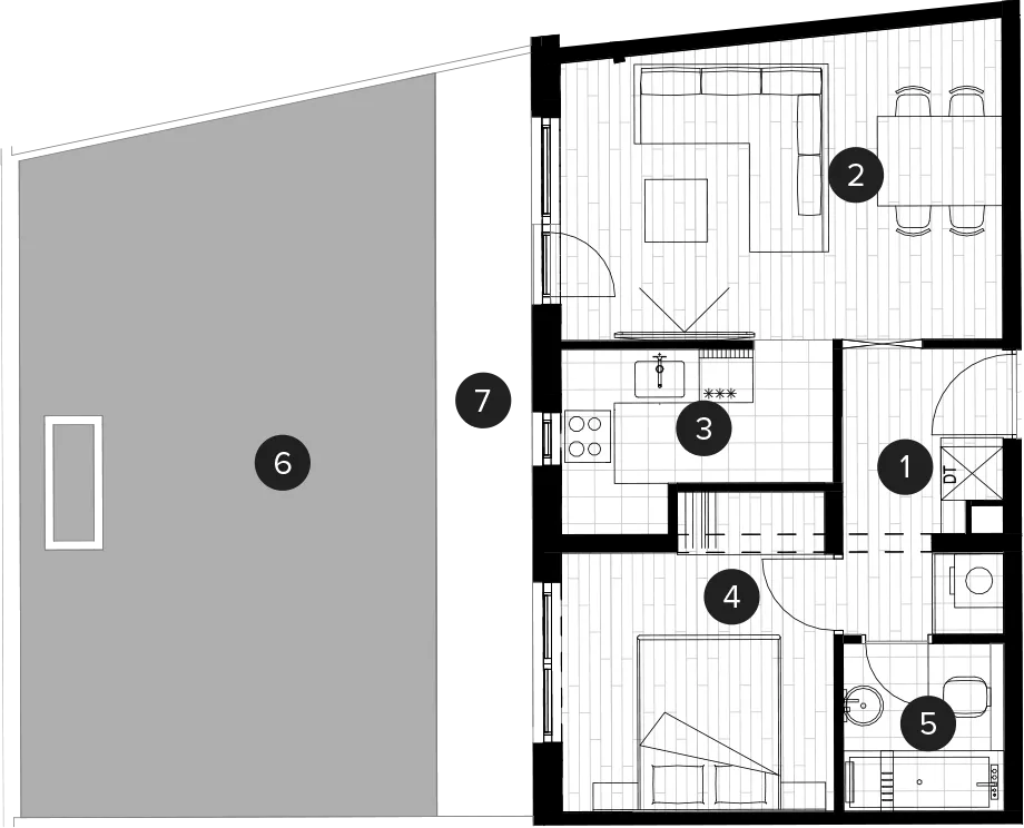 | 7 | Natkrivena terasa | 8.9 m² | 0.5 | 4.45 m² |